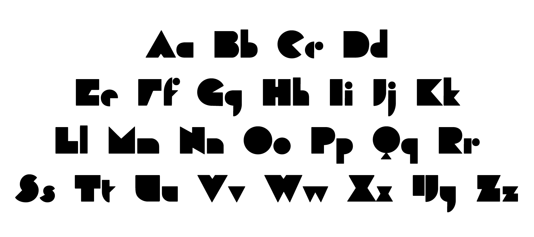 j,t, and U stand out from the rest of the letters. They are updated to be adhere more to the defining characteristics of the typeface.So far, I have a rough visual system to guide the progression of this typeface. My goal is to create a text typeface that carries the spirit of the original drawing, that is, a system of letters constructed from geometric shapes.